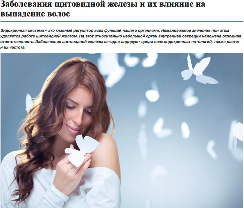 СТАТЬЯ «ЗАБОЛЕВАНИЯ ЩИТОВИДНОЙ ЖЕЛЕЗЫ И ИХ ВЛИЯНИЕ НА ВЫПАДЕНИЕ ВОЛОС»